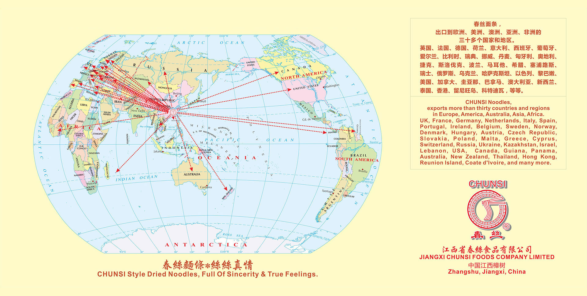 江西省春絲食品有限公司位于江西省樟樹市。 樟樹具有制作面條的悠久歷史傳統(tǒng)。古來即有民謠:“臨江府、清江縣(即樟樹),六歲伢仔會做面?!?今春絲公司是江西省內(nèi)具有規(guī)模的面條、米粉加工企業(yè),也是全國知名的面條生產(chǎn)企業(yè)。春絲公司現(xiàn)擁有“春絲”、“凌波仙子”、“絲絲?!薄ⅰ按杭选彼拇笃放?,一百多個品種。所有面條、米粉產(chǎn)品均選用合格原料,符合國家質(zhì)量和衛(wèi)生標(biāo)準(zhǔn)。產(chǎn)品具有安全健康、面體勁道、柔韌爽滑、易熟、久煮不糊、不渾湯等特色,深受廣大消費者歡迎。春絲產(chǎn)品已全面進(jìn)入沃爾瑪、家樂福、樂購、歐尚、好又多、易初蓮花等大型超市,并遠(yuǎn)銷美國、日本、英國、德國、法國、西班牙、意大利、葡萄牙、香港等二十多個國家和地區(qū)。